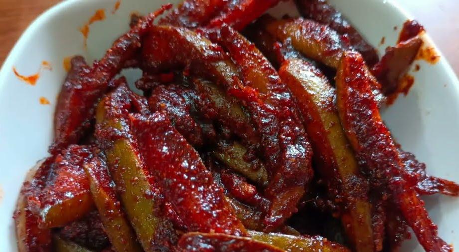 ആവശ്യത്തിന് കാശ്മീരി മുളകുപൊടിയും ആവശ്യത്തിന് എണ്ണയും മുളകും പഞ്ചസാര പൊടിച്ചതും ഒക്കെ ചേർത്തതിനുശേഷം നല്ലപോലെ ചൂടാക്കിയെടുത്ത് എണ്ണ